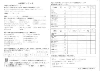 - この度はアンケートへのご記入と貴重なご意見をいただき、誠にありがとうございました。