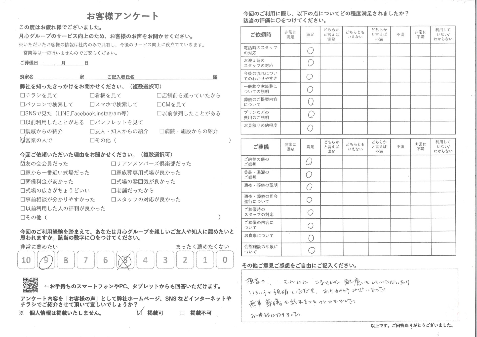 月心グループでは、ご葬儀後にお客様アンケートをさせて頂いております。